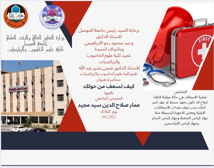 أمن نفسك برعاية السيد رئيس جامعة الموصل الاستاذ الدكتور وحيد محمود الابراهيمي وباشراف السيدة عميد كلية علوم الحاسوب والرياضيات الأستاذ الدكتور ضحى بشير عبدالله البزاز [إقرأ المزيد]
