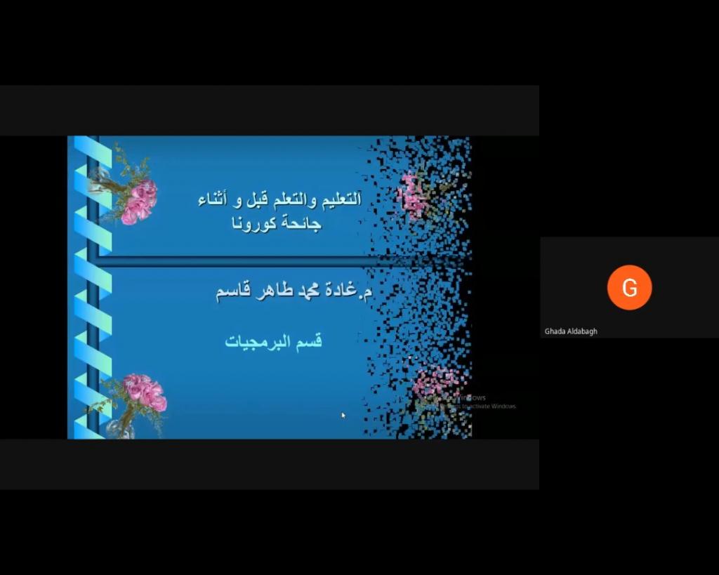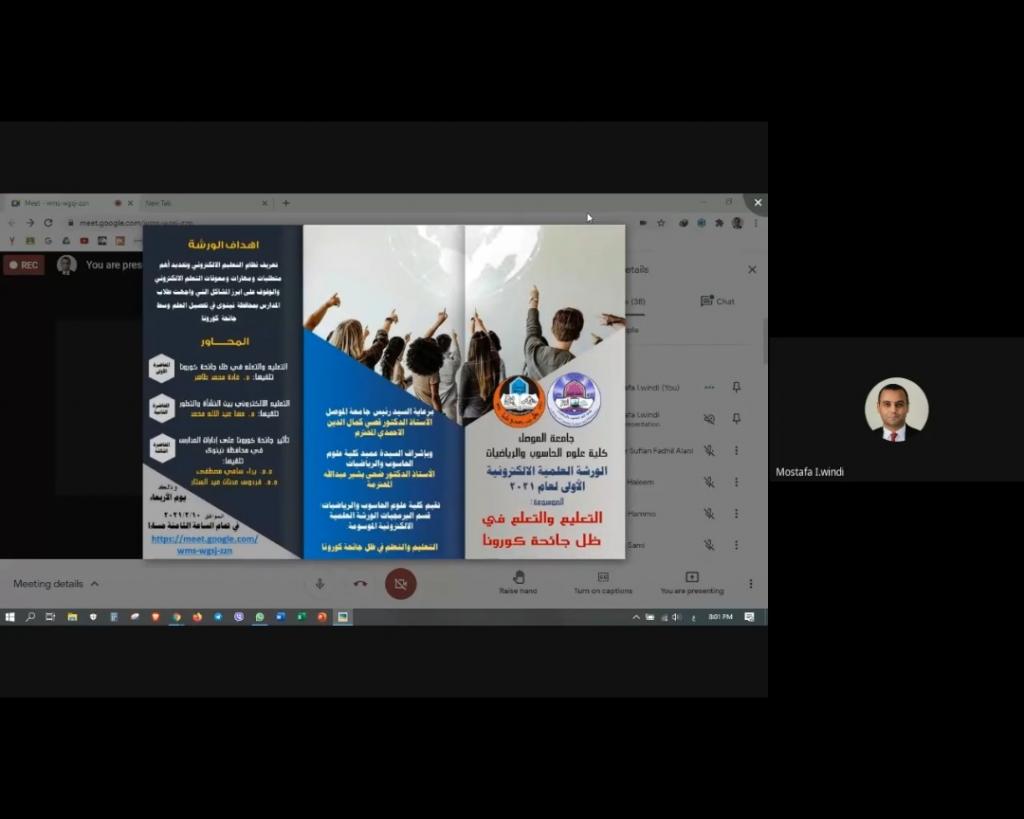 أقيمت الورشة العلمية الالكترونية الاولى بعنوان “التعليم والتعلم في ظل جائحة كورونا” لقسم البرمجيات ضمن سلسلة النشاطات المستمرة لكلية علوم الحاسوب والرياضيات – جامعة الموصل للعام الدراسي 2020-2021 وعبر الفضاء الالكتروني يوم الأربعاء 10-2-2021 .