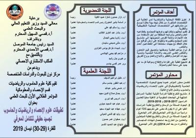 المؤتمر الطلابي الاول لقسم الاحصاء في كلية علوم الحاسوب والرياضيات في جامعة الموصل للفترة 29-30نيسان 2019.