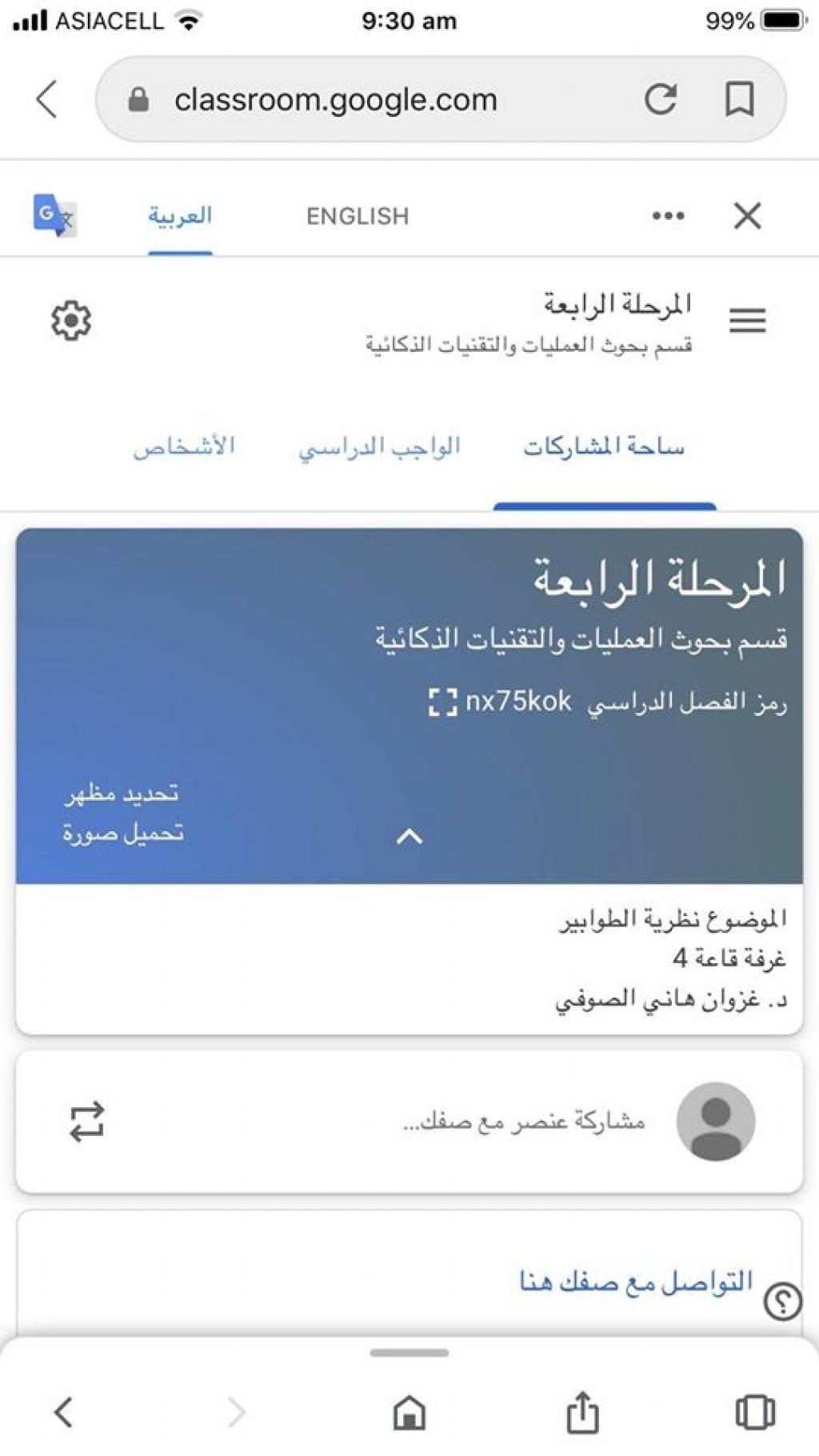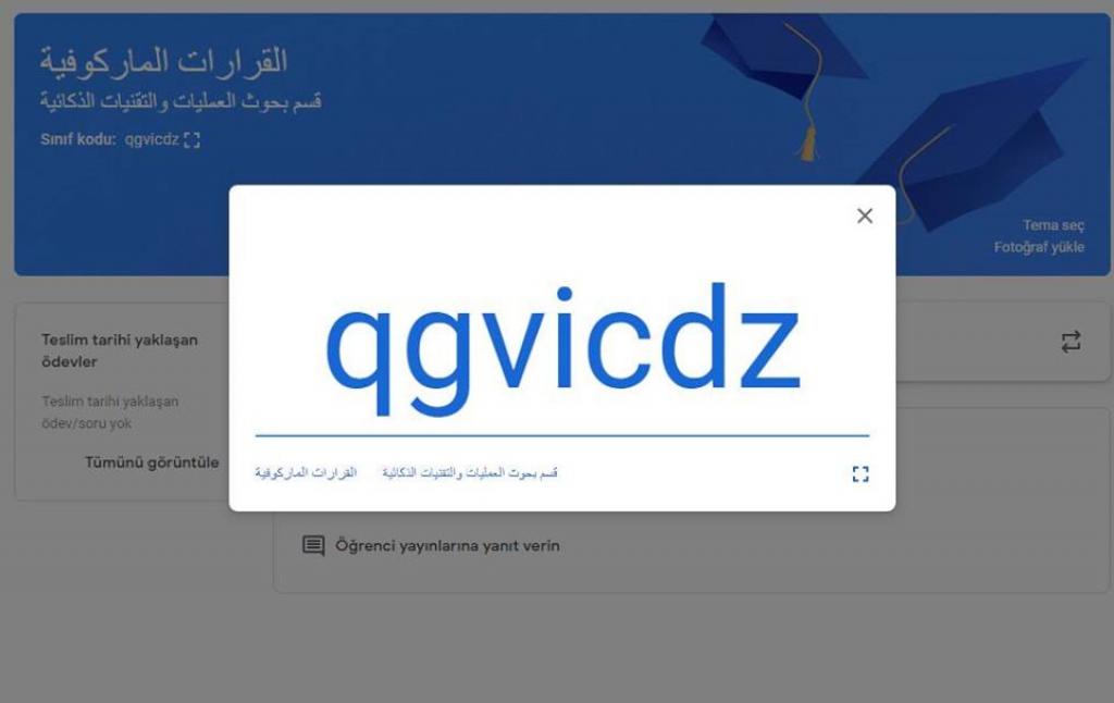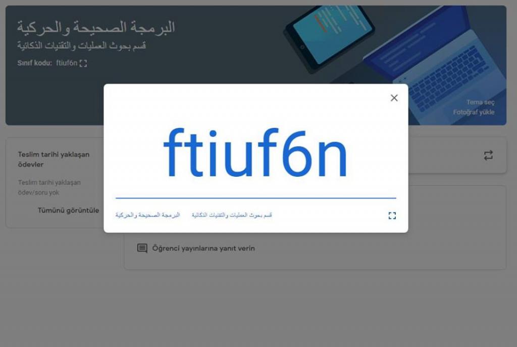 استنادا الى توجيهات السيد رئيس جامعة الموصل الاستاذ الدكتور قصي كمال الدين الأحمدي وبأشراف السيد عميد الكلية الأستاذ الدكتور نزار حمدون شكر ومتابعة السيد رئيسة قسم بحوث العمليات والتقنيات الذكائية الدكتورة ابتهاج عبدالحميد الكسو تم اكمال وانشاء الصفوف الالكترونية لطلبتنا الأعزاء عبر برنامج Google Classroom.