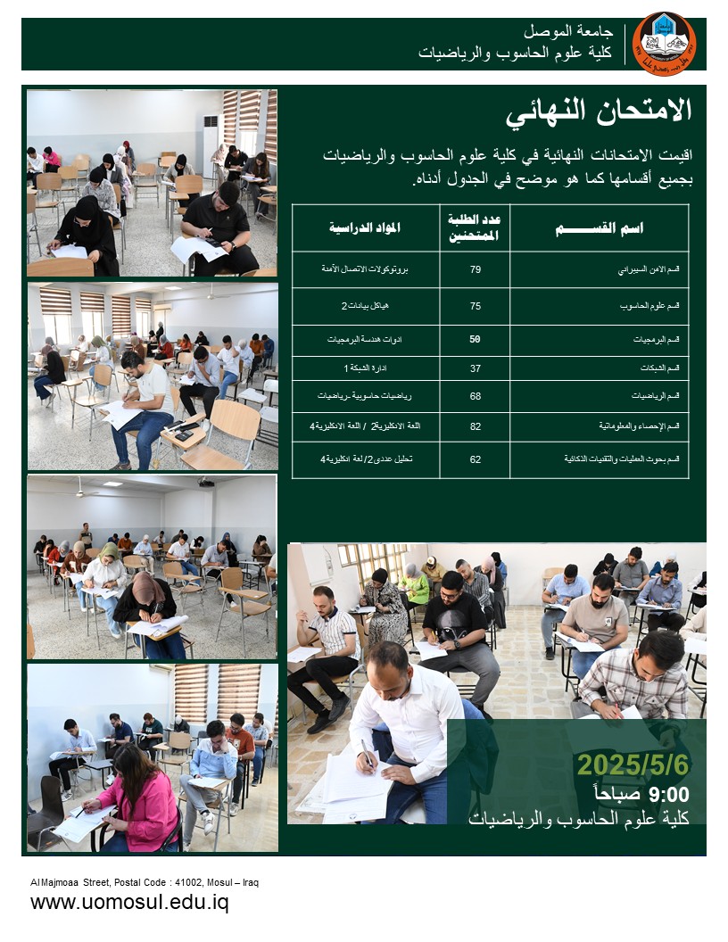 الموقف اليومي لامتحانات كلية علوم الحاسوب والرياضيات/ اليوم الثالث