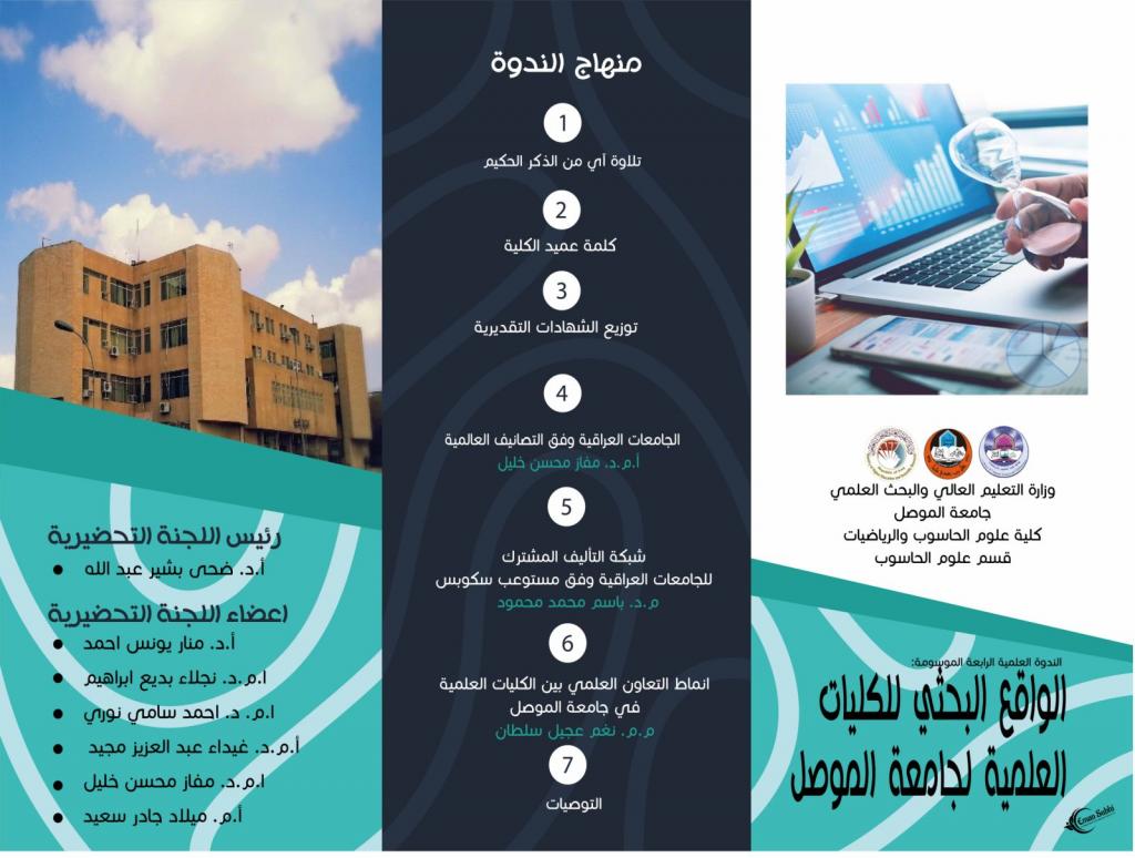 وباشراف السيدة عميد كلية علوم الحاسوب والرياضيات الاستاذ الدكتور ضحى بشير عبدالله المحترمةتقيم كلية علوم الحاسوب والرياضيات الندوة العلمية الرابعة الموسومة :