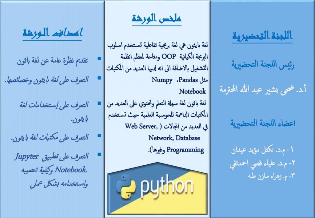 الورشة العلمية الحادية عشرة للعام 2021-2021 الموسومة: (لغة Python واستخداماتها في الوقت الحاضر )