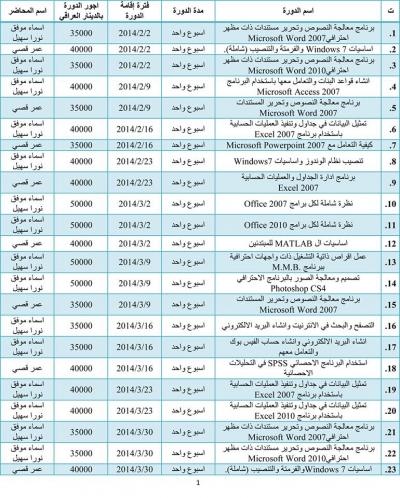 انطلاقا من دور الجامعة في خدمة المجتمع واسهاما في رفع مهارات ومستويات الكودار الوظيفية لمختلف دواشر الدولة ستقيم كلية علوم الحاسوب والرياضيات الدورات المدرجة .
