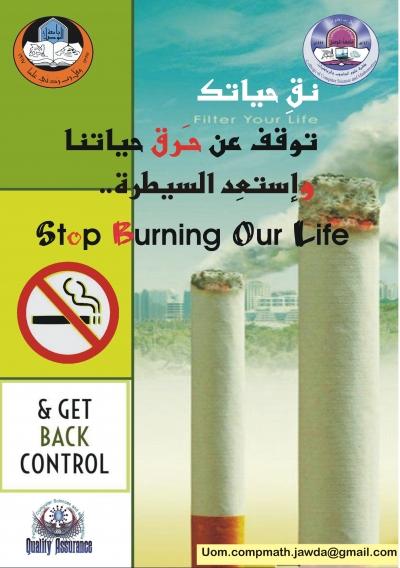قامت شعبة ضمان الجودة والاداء الجامعي بتصميم بوسترات توعوية في الكلية استنادا الى تعليمات وزارة التعليم العالي والبحث العلمي للحملة التوعوية بمضار التدخين والمخدرات على شباب المجتمع والتاثير السلبي لها لكافة جوانب الحياة