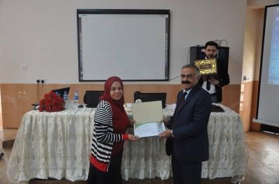 لقطات تكريم السيد عميد الكلية الأستاذ الدكتور نزار حمدون شكر الى السادة اعضاء اللجنة العلمية والتحضيرية بالشهادات التقديرية للورشة العلمية التي اقامها قسم هندسة البرمجيات في الكلية.