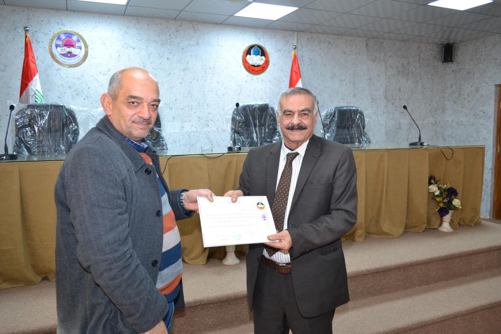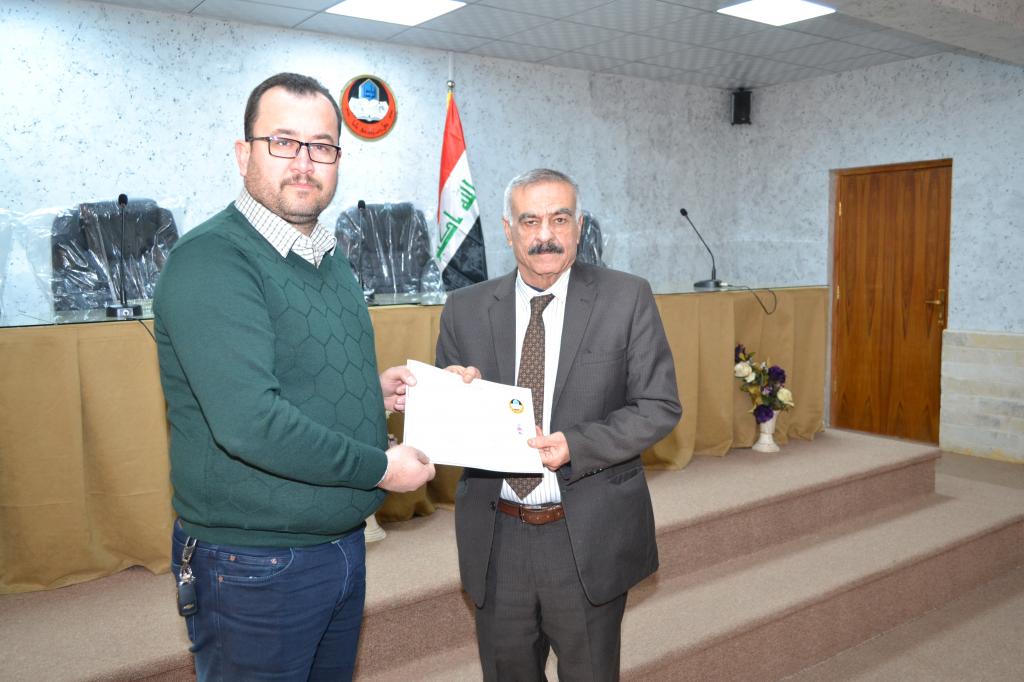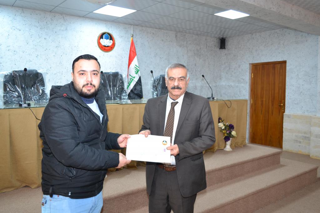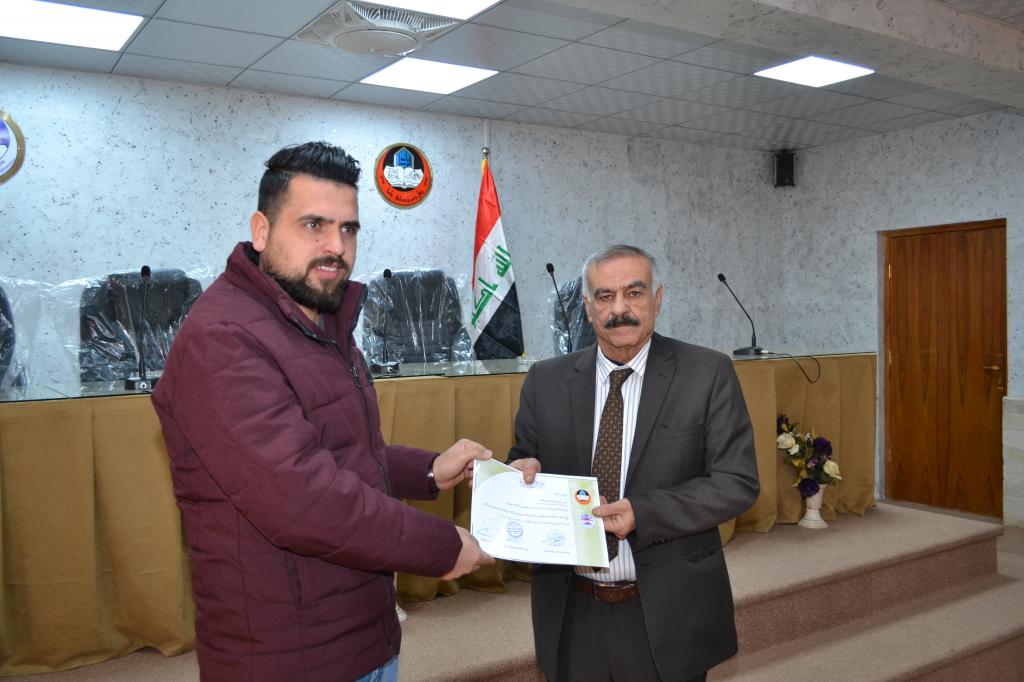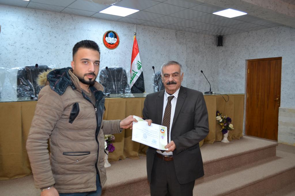ضمن التوصيات المستمرة للسيد رئيس جامعة الموصل الاستاذ الدكتور قصي كمال الدين الأحمدي بضرورة تفعيل مبدأ مشاركة الجامعة في خدمة وتطوير المجتمع، وبحضورالسيد عميد الكلية الأستاذ الدكتور نزار حمدون شكر,تم توزيع شهادات المشاركة في الدورة التي اقامتها الكلية بعنوان “دليل الإرشاد الوظيفي واخلاقيات العمل” وكانت الدورة بالتعاون بين وحدة التاهيل والتوظيف والمتابعة مع شعبة الإعلام والعلاقات العامة في الكلية والتي تستهدف الطلبة الخريجين لجميع الاختصاصات المقبلين على سوق العمل والوظيفة وللفترة من 19-1-2020 ولمدة اسبوع واحد في عمادة الكلية