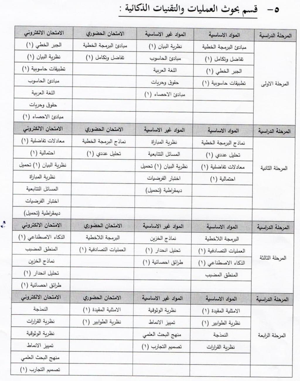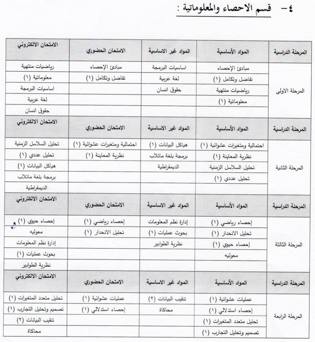 إعلان إلى طلبتنا الأعزاء – الدراسات الأوليةبناءاً على تعليمات وزارة التعليم العالي والبحث العلمي الموقرة باعتماد نَمَطَّي الامتحان (الحضوري والإلكتروني) , نعلن لكم في الجداول التالية تصنيف المواد لأداء امتحانات نهاية الفصل للعام الدراسي 2020-2021 للمراحل الدراسية للأقسام العلمية كافة.
