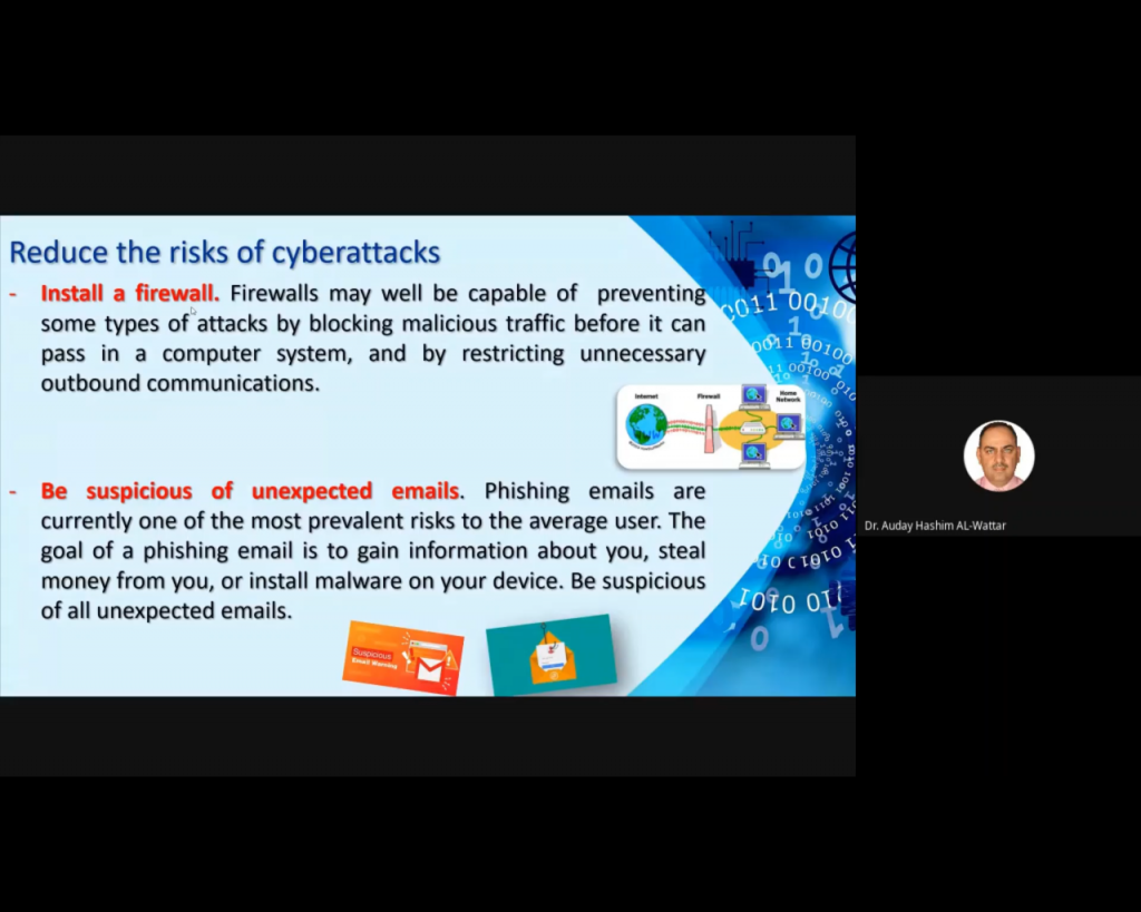 كلية علوم الحاسوب والرياضيات تقيم الورشة العلمية الإلكترونية الخامسة الموسومة “الأمن السيبراني والتصفح الآمن”