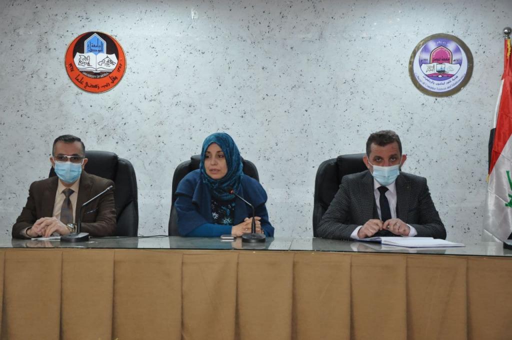 انطلاقا من حرصها المستمر على متابعة أحوال الطلبة وتأكيدا على أهمية اللقاءات المباشرة ودورها في تذليل المشاكل والمعوقات.. التقت السيدة عميد الكلية ا.د.ضحى بشير عبد الله المحترمة وبحضور السيد معاون العميد للشؤون العلمية والسادة رؤساء الأقسام العلمية المحترمون، يوم الاثنين الموافق 25-1-2021 بممثلي طلبة المراحل الدراسية للأقسام العلمية المختلفة في الكلية.رحبت السيدة العميد من خلال اللقاء بالطلبة الأعزاء متمنية لهم التوفيق والنجاح في عامهم الدراسي، مؤكدة على أهمية التواصل المباشر مع الطلبة.تم من خلال اللقاء الاطلاع على المشاكل والمعوقات التي يواجهها الطلبة في التعليم الإلكتروني وذلك لإيجاد الحلول السريعة لها.كما تناول اللقاء نقاشا حول نمط التعليم الإلكتروني المعتمد في الكلية وتحديدا منصة ادمودو ، مع التطرق الى الامتحانات الفصلية والنهائية وتوضيح الية إجرائها.هذا ويأتي هذا الاجتماع في اطار اللقاءات الدورية التي تحرص السيدة العميد على عقدها مع الطلبة لغرض الاستماع إلى مشاكلهم بشكل مباشر.هذا ووجهت السيدة العميد بعد هذا اللقاء، ما يلي:١. ضرورة التواصل مع الطلبة من خلال المنصات الإلكترونية والإجابة على ملاحظاتهم واستفساراتهم أول بأول.٢. التوجه إلى إعطاء المحاضرات بشكل متزامن (Live) حسب تعليمات الوزارة الأخيرة مع تسجيل الاجتماع وجعله متاحا للطلبة للرجوع اليه في أي وقت.٣- تكون فترة تسجيل حضور الطلبة طوال فترة إعطاء المحاضرة مراعاة للمشاكل التقنية في الأنترنيت أو مشاكل الطاقة الكهربائية التي قد تحدث.كما أثنت السيدة العميدة على الكادر التدريسي لما يقدمه من جهود سواء في المحاضرات الإلكترونية او المختبرات العملية وشجعت الطلبة على التعليم وحضور المحاضرات والتواصل مع الأساتذة لغرض تيسير العملية التعليمية واعدة إياهم بتذليل كافة الصعوبات التي تواجههم.