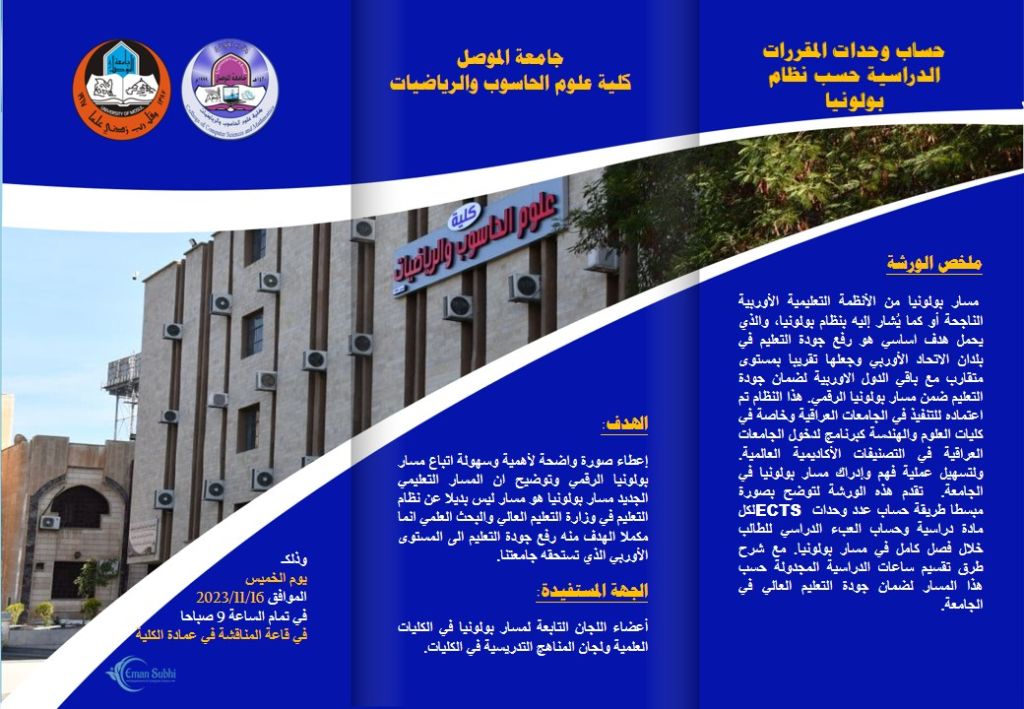استمرارا لحركة البحث العلمي وبمتابعة وحضور السيدة عميد كلية علوم الحاسوب والرياضيات الأستاذ الدكتور ضحى بشير عبد الله المحترمة نوقشت في قاعة المناقشة بكلية علوم الحاسوب والرياضيات في جامعة الموصل يوم 14 – 11 – 2023 أطروحة الدكتوراه (تصميم اﻻﺑﺗﺳﺎﻣﺔ اﻟرﻗﻣﯾﺔ ﺑﺎﺳﺗﺧدام ﻣﻌﺎﻟﺟﺔ ﺻورﯾﺔ ﻟﻸﺳﻧﺎن ﺑﺎﻋﺗﻣﺎد اﻟﺗﻘﻧﯾﺎت اﻟذﻛﺎﺋﯾﺔ) للطالب يونس سمير يونس محمد الحيالي وبإشراف أ.د. اسراء محمد خضر