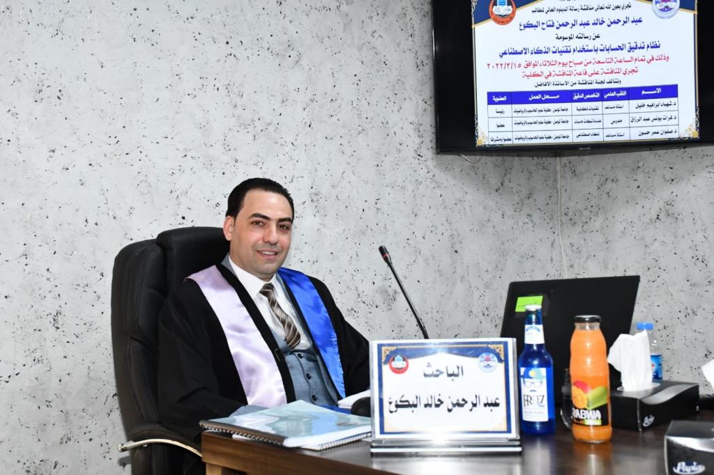 مناقشة رسالة دبلوم عالي في كلية علوم الحاسوب والرياضيات – قسم البرمجياتبعنوان (نظام تدقيق الحسابات باستخدام تقنيات الذكاء الاصطناعي)استمرارا لحركة البحث العلمي وبمتابعة السيدة عميد كلية علوم الحاسوب والرياضيات الأستاذ الدكتور ضحى بشير عبد الله المحترمة.نوقشت في كلية علوم الحاسوب والرياضيات بجامعة الموصل يوم الثلاثاء 15/3/2022، رسالة الدبلوم العالي : (نظام تدقيق الحسابات باستخدام تقنيات الذكاء الاصطناعي)للطالب عبدالرحمن خالد عبدالرحمن فتاح البكوع وبإشراف أ.م.د صفوان عمر حسونتناولت الرسالة التي تقدم بها الطالب عمل نظام تدقيق الحسابات المعتمد على النظام الخبير.والجانب التطبيقي والذي يعد تجربة عملية جديدة في الشركة المبحوثة في اجراء عمليات تدقيق الحسابات لما تتميز بسرعة وكفاءة بالأداء واظهار النتائج امكانية تنفيذها من قبل الافراد غير المتخصصين بدلا من الاعتماد على الطرق التقليدية كونها تتسم بالبطء ويتم اجرائها من قبل الاشخاص ذوي الخبرة والمتخصصين فقط.تطرقت الدراسة الى استخدام نظام لتدقيق الحسابات بالاعتماد على النظام الخبير والذي سوف يسهم في الحصول على النتائج المطلوبة بوقت اقل ودقة عالية.تهدف الدراسة الى تصميم نظام خبير يستند الى قاعدة معرفة (knowledge base) يضعها الشخص الخبير استنادا الى الحقائق والقوانين تعمل على تدقيق بيانات جداول الكشوفات المالية للأقسام المسؤولة عن الحسابات المالية .تالفت لجنة المناقشة من أ.م.د شهباء خليل إبراهيم – رئيسا, م.د فرات يونس عبدالرزاق – عضوا و أ.م.د صفوان عمر حسون – عضوا ومشرفا.