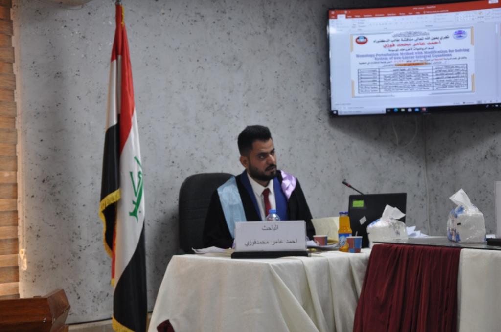 استمرارا لحركة البحث العلمي وبمتابعة وحضور السيدة عميد كلية علوم الحاسوب والرياضيات الأستاذ الدكتور ضحى بشير عبد الله المحترمة ..نوقشت يوم الاحد 20-6-2021 في قاعة المناقشة بكلية علوم الحاسوب والرياضيات في جامعة الموصل اطروحة الدكتوراه الموسومة :(Homotopy Perturbation Method with Modification for Solving system of non-Linear Integral Equations) للطالب احمد عامر محمد فوزي وبإشراف كل من الأستاذ الدكتور برهان فخرالدين والاستاذ المساعد الدكتور وليد محمد فتحي الحياني .وقد تألفت لجنه المناقشة من السادة:أ. د. سعد عبدالله مناع – رئيساأ.د. احمد مولود عبدالهادي – عضواأ.د. اكرم حسان محمود – عضواأ.م.د. ثائر يونس ذنون – عضواأ.م.د. احمد محمد جمعة – عضواا.د. برهان فخر الدين جمعة – عضوا ومشرفاًا.م.د. وليد محمد فتحي – عضوا ومشرفاًوقد حصل الطالب على شهادة الدكتوراه في علوم الرياضيات فالف مبروك للطالب وللمشرفين إنجازهم العلمي