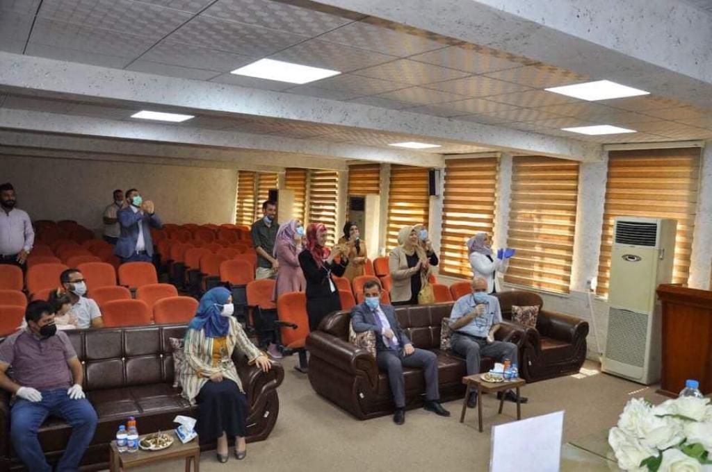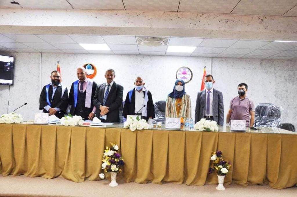 وقد جرت المناقشة على قاعة المناقشات في الكلية يوم الاثنين المصادف 11/8/2020 وتألفت لجنة المناقشة من السادة المدرجة اسمائهم:أ.د. سعد ناجي علي العزاوي/ رئيساً وعبرالفضاء الالكترونيأ.د. اكرم حسان محمود/ عضواًأ.م.د. احمد محمد علي/ عضواً