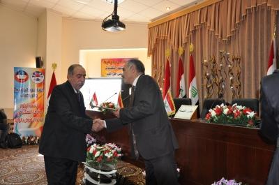 منح الاستاذ الدكتور نزار حمدون شكر عميد كلية علوم الحاسوب والرياضيات شهادة تقديرية الى الاستاذ الدكتور ابي سعيد الديوه جي رئيس جامعة الموصل لحضوريه المؤتمر العلمي السادس المقام في الكلية