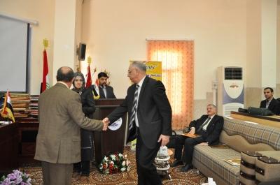 منح الاستاذ الدكتور نزار حمدون شكر عميد كلية علوم الحاسوب والرياضيات شهادة تقديرية الى الاستاذ الدكتور باسل يونس ذنون عضو اللجنة التحضيرية في انجاح اعمال المؤتمر العلمي السادس المقام في الكلية