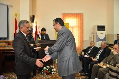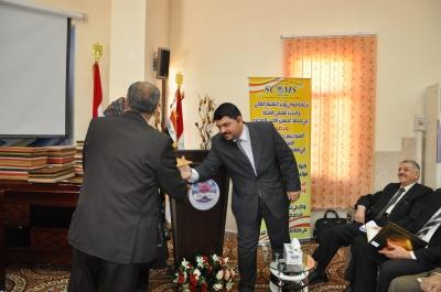 منح الاستاذ الدكتور نزار حمدون شكر عميد كلية علوم الحاسوب والرياضيات شهادة تقديرية الى الدكتورة شذى عبد الله محمد عضو اللجنة التحضيرية في انجاح اعمال المؤتمر العلمي السادس المقام في الكلية