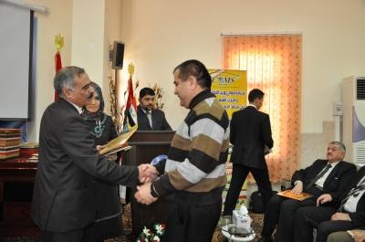 منح الاستاذ الدكتور نزار حمدون شكر عميد كلية علوم الحاسوب والرياضيات شهادة تقديرية الى السيد موفق ابراهيم حسن عضو لجنة الاسناد في انجاح اعمال المؤتمر العلمي السادس المقام في الكلية
