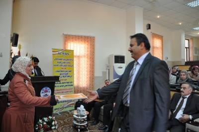 منح الاستاذ الدكتور نزار حمدون شكر عميد كلية علوم الحاسوب والرياضيات شهادة تقديرية الى السيد خيري بدل رشيد عضو لجنة الاسناد في انجاح اعمال المؤتمر العلمي السادس المقام في الكلية