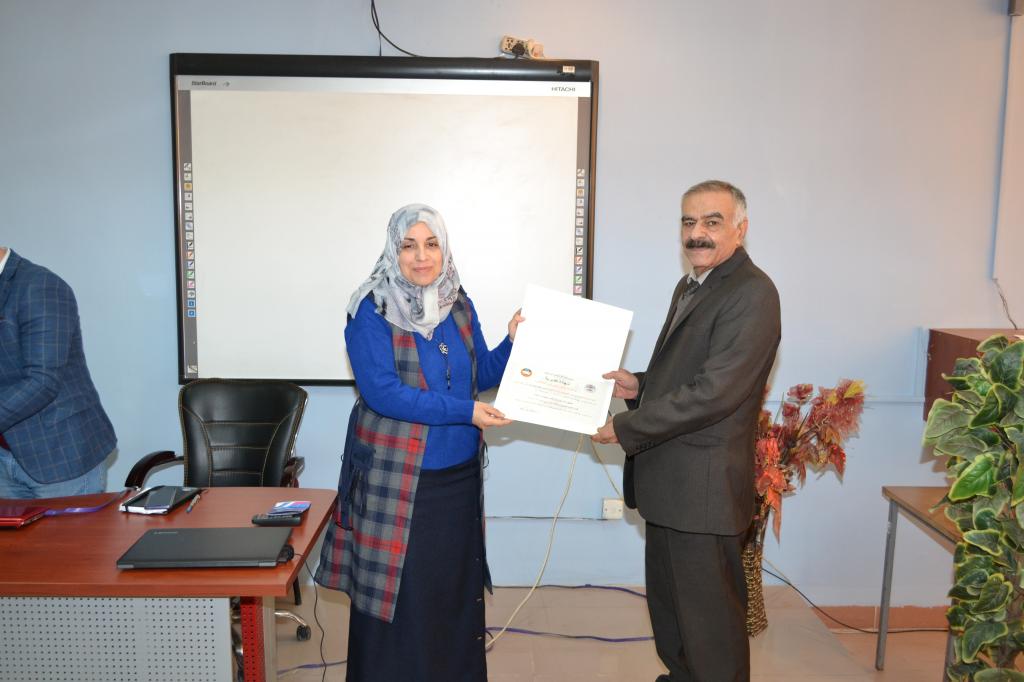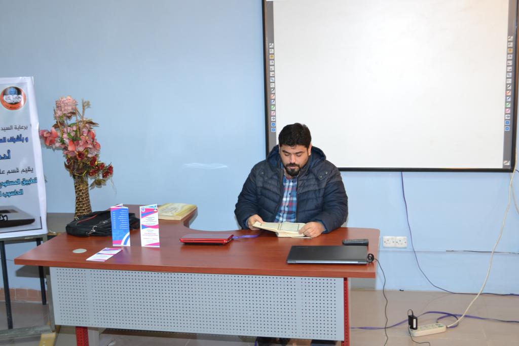 برعاية وحضور السيد وكيل عميد كلية علوم الحاسوب والرياضيات الاستاذ المساعد الدكتور احمد محمد جمعة وباشراف السيدة رئيس قسم علوم الحاسوب الاستاذ الدكتور ضحى بشير عبد الله اقام قسم الحاسوب ورشة عمل بعنوان “تطبيق المستودع الرقمي لبحوث اساتذة قسم علوم الحاسوب للعام الدراسي 2019-2020” اليوم الاربعاء 11-12-2019 على قاعة الاستاذ خليل نبيل عمر حيث بدأت الورشة بتلاوة ايات من الذكر الحكيم تلاها كلمة السيد رئيس القسم ومن ثم توزيع الشهادات التقديرية على السادة اعضاء اللجنة التحضيرية للورشة لتبدأ الورشة اعمالها بالقاء محاضرات للسادة التدريسين المشاركين في الورشة