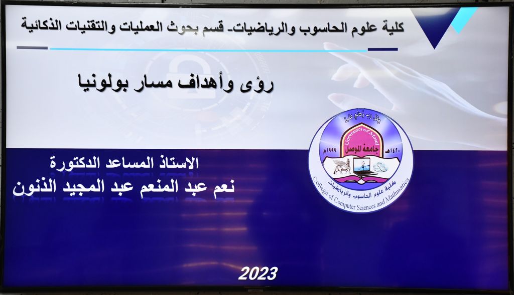 اقامت كلية علوم الحاسوب والرياضيات – قسم الاحصاء والمعلوماتية بجامعة الموصل ورشة بعنوان “مسار بولونيا ومخرجات التعلم” ، يوم الخميس التاريخ 7/12/2023 كانون الاول 2023 الساعة العاشرة صباحا