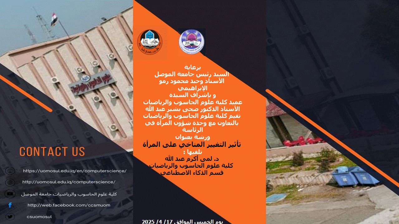 برعاية السيد رئيس جامعة الموصل الاستاذ الدكتور وحيد محمود الابراهيمي واشراف السيدة عميد كلية علوم الحاسوب والرياضيات الأستاذ الدكتور ضحى بشير عبدالله المحترمة وضمن سلسلة [إقرأ المزيد]
