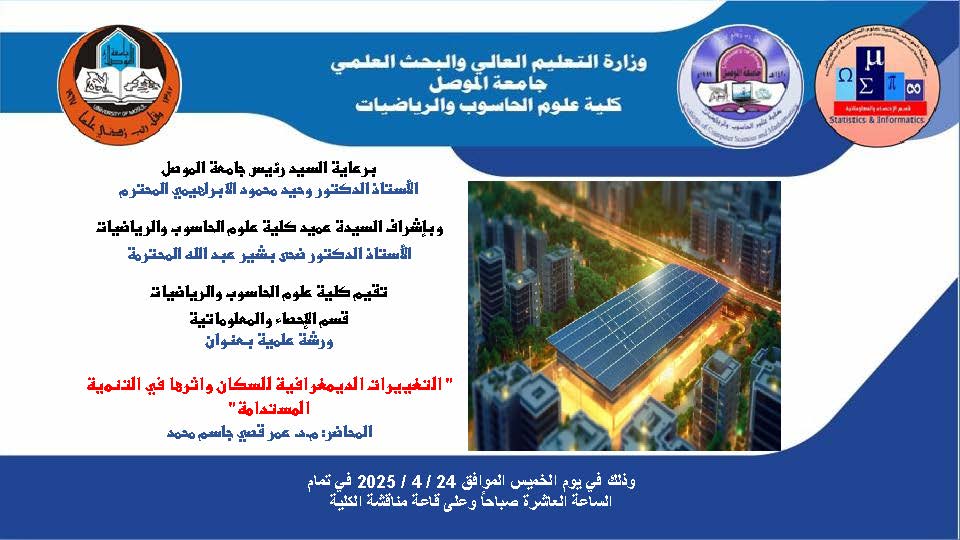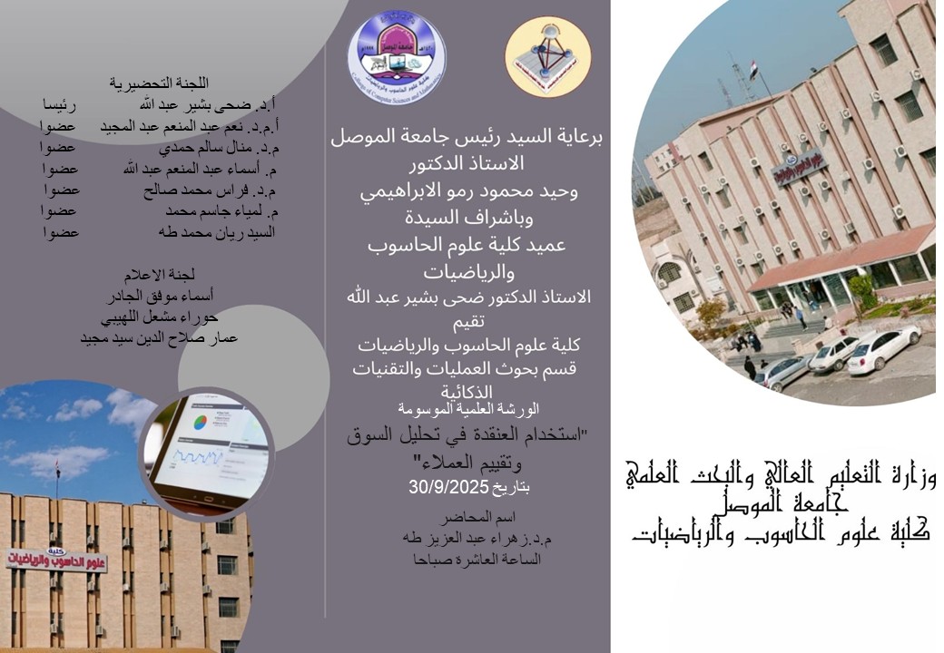 برعاية السيد رئيس جامعة الموصل الاستاذ الدكتور وحيد محمود الابراهيمي وباشراف ومتابعة السيده عميد كلية علوم الحاسوب والرياضيات الاستاذ الدكتور ضحى بشير عبدالله البزاز اقامت [إقرأ المزيد]