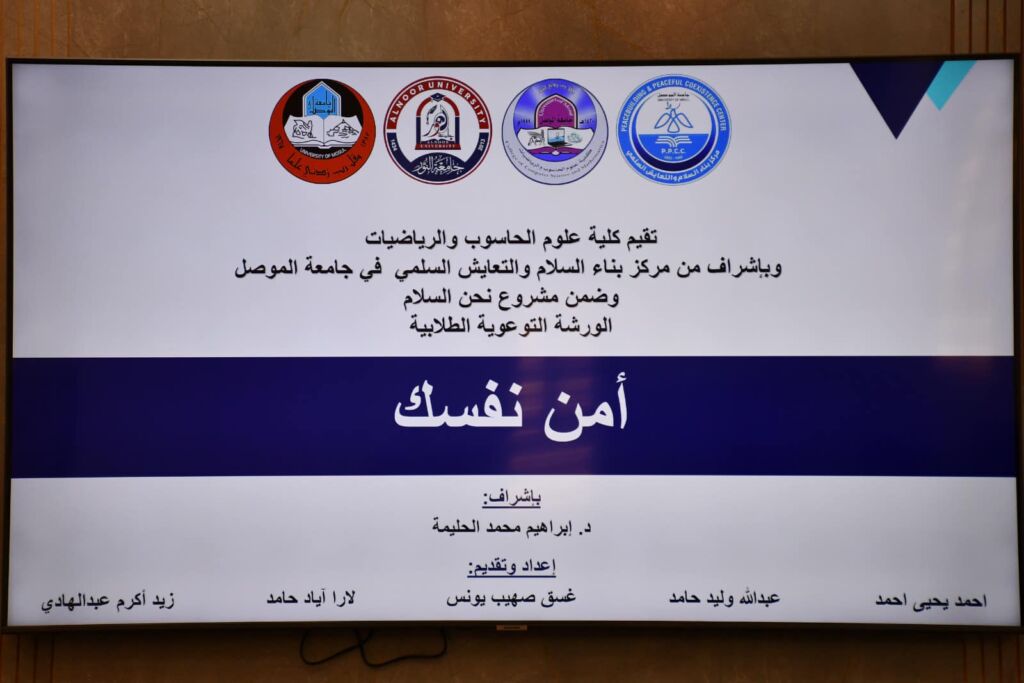 برعاية السيد رئيس جامعة الموصل الاستاذ الدكتور (وحيد محمود رمو الابراهيمي) وبأشراف السيدة عميد الكلية الأستاذ الدكتور (ضحى بشير عبد الله) تقيم كلية علوم الحاسوب والرياضيات محاضرة توعوية بعنوان “كيف تسعف من حولك ” يوم الثلاثاء 25-2-2025 والدعوة عامة