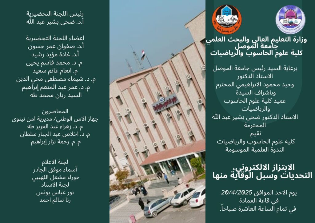 برعاية السيد رئيس جامعة الموصل الأستاذ الدكتور وحيد محمود الابراهيمي المحترم وبأشراف السيدة عميد كلية علوم الحاسوب والرياضيات الأستاذ الدكتور ضحى بشير عبد الله المحترمة