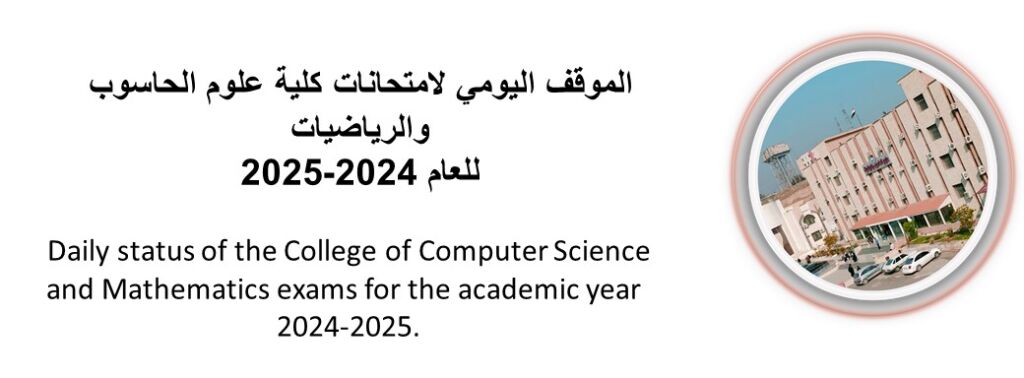 برعاية السيد رئيس جامعة الموصل الأستاذ الدكتور وحيد محمود الإبراهيمي المحترم وبإشراف السيدة عميد كلية علوم الحاسوب والرياضيات الأستاذ الدكتور ضحى بشير عبدالله المحترمة