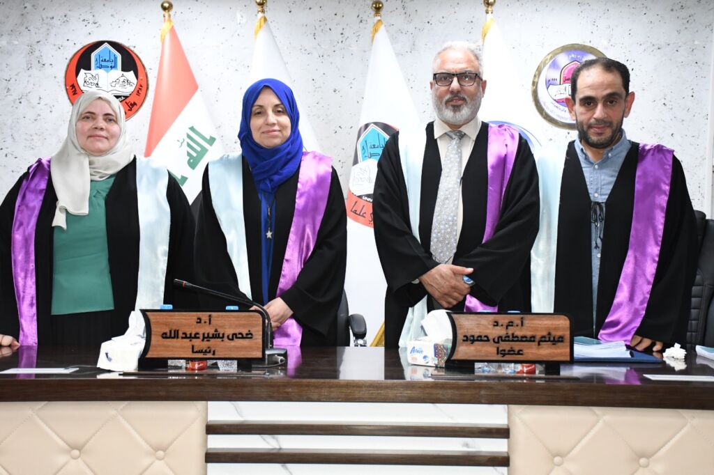 18 /9 /2025 أطروحة دكتوراه للطالب ” شيماء شكيب محمد” وبإشراف أ.م.د . ياسين حكمت اسماعيل
