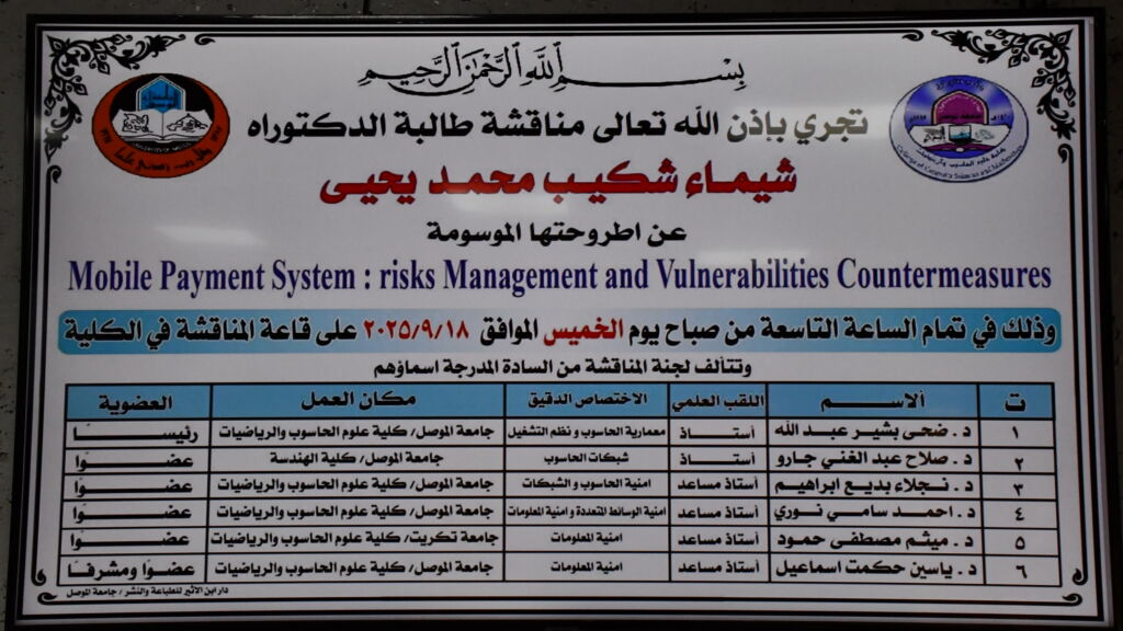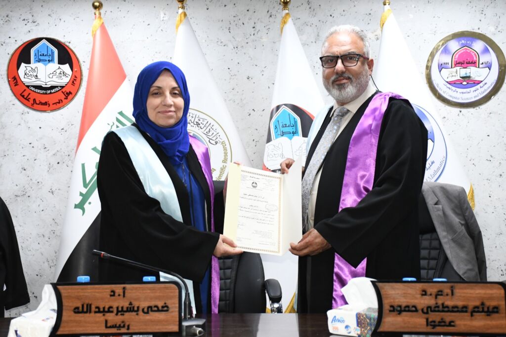 نوقشت في قاعة المناقشة بكلية علوم الحاسوب والرياضيات في جامعة الموصل يوم الخميس بتاريخ