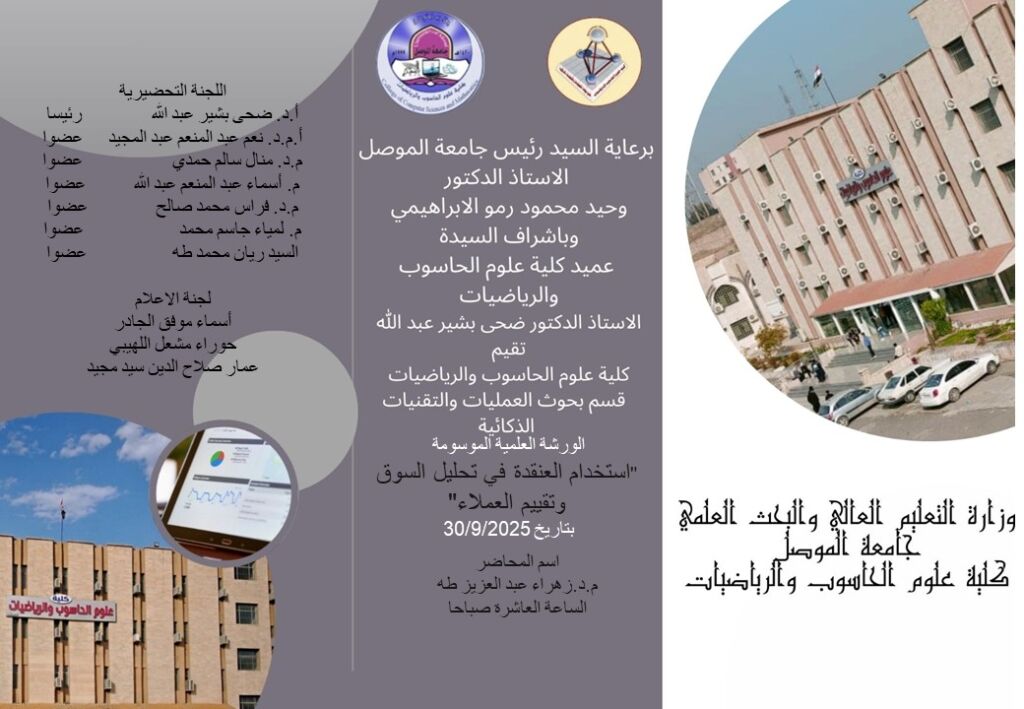 برعاية واشراف السيدة عميد كلية علوم الحاسوب والرياضيات الأستاذ الدكتور ضحى بشير عبدالله المحترمة وضمن سلسلة النشاطات العلمية للكلية, اقامت الكلية ضمن دورات التعليم المستمر للعام الدراسي 2025-2026 دورة تعليم مستمر بعنوان “Lightweight Security Methods for IoT” القتها كل من