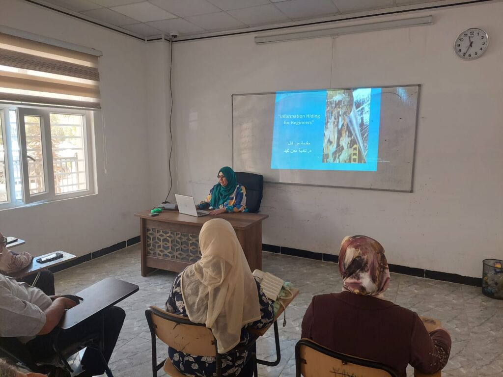 برعاية واشراف السيدة عميد كلية علوم الحاسوب والرياضيات الأستاذ الدكتور ضحى بشير عبدالله المحترمة وضمن سلسلة النشاطات العلمية للكلية, اقامت الكلية ضمن دورات التعليم المستمر للعام الدراسي 2025-2026 دورة تعليم مستمر بعنوان “Information Hiding for Beginners ” القتها أ.م.د. نادية معن محمد يوم الاحد 21-9-2025 .