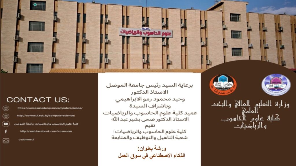 برعاية واشراف السيدة عميد كلية علوم الحاسوب والرياضيات الأستاذ الدكتور ضحى بشير عبدالله المحترمة وضمن سلسلة النشاطات العلمية للكلية, اقامت الكلية بالتعاون مع وحدة شؤون المرأة ورشة تدريبية بعنوان “دور الاحصاء في تنظيم ادارة الوقت وحل مشكلات اتخاذالقرار” يوم الاحد 5-10-2025 القتها : أ.م.د.بان غانم عمر