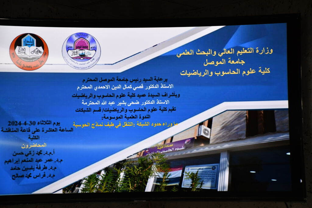 برعاية السيد رئيس جامعة الموصل الأستاذ الدكتور قصي كمال الدين الاحمدي المحترم وبأشراف السيدة عميد كلية علوم الحاسوب والرياضيات الأستاذ الدكتور ضحى بشير عبد الله المحترمة