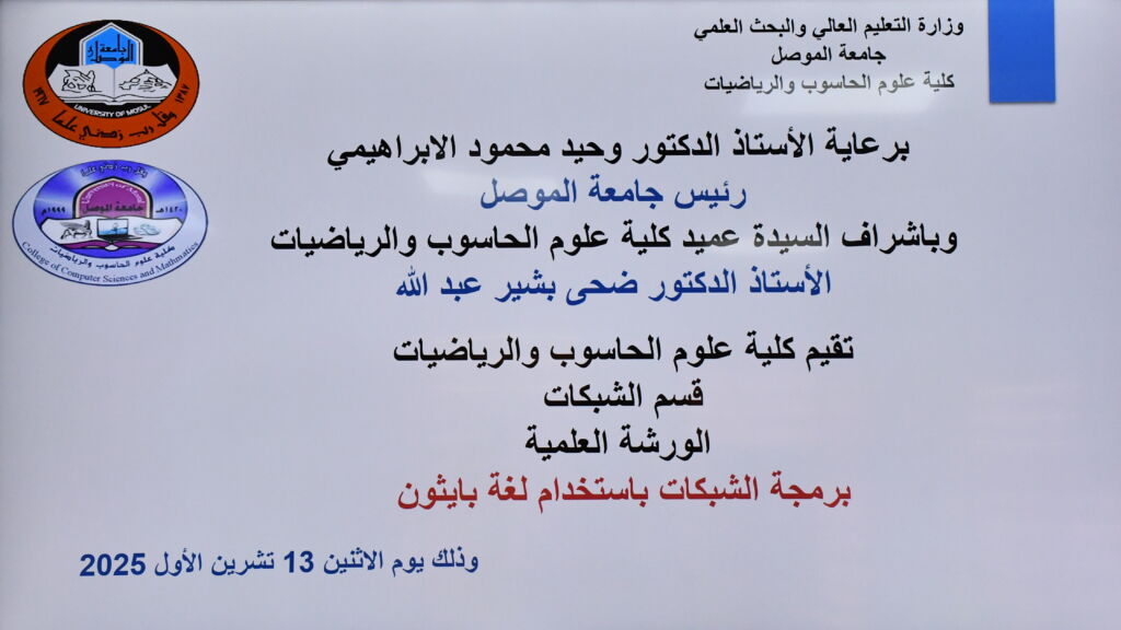 برعاية واشراف السيدة عميد كلية علوم الحاسوب والرياضيات الأستاذ الدكتور ضحى بشير عبدالله المحترمة وضمن سلسلة النشاطات العلمية للكلية, اقامت الكلية سلسلة من دورات التعليم المستمر للعام الدراسي 2025-2026 من ضمنها دورة تعليم مستمر “مكافحة الفساد الإداري ” يومي الاحد والاثنين المصادف 12/13-10-2025 القاها ا. م . د ليث ذنون حسين جامعة الموصل / كلية الحقوق / فرع القانون العام