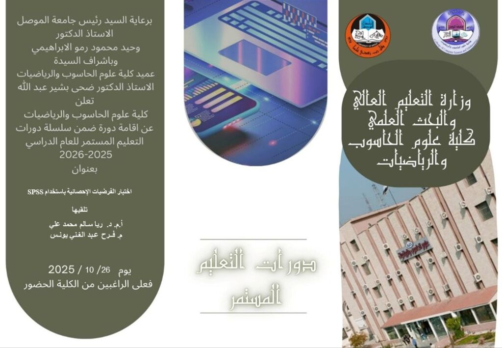 برعاية واشراف السيدة عميد كلية علوم الحاسوب والرياضيات الأستاذ الدكتور ضحى بشير عبدالله المحترمة وضمن سلسلة النشاطات العلمية للكلية, تقيم الكلية/ شعبة التاهيل والتوظيف والمتابعة دورة بعنوان “تحليل البيانات الضخمة في ادارة الاعمال ” ابتداءا من يوم الاحد 26-10-2025 .