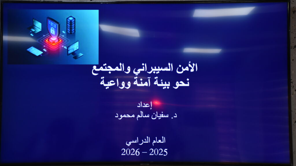 برعاية واشراف السيدة عميد كلية علوم الحاسوب والرياضيات الأستاذ الدكتور ضحى بشير عبدالله المحترمة وضمن سلسلة النشاطات العلمية للكلية , اقامت كلية علوم الحاسوب والرياضيات الورشة العلمية الموسومة “الامن السيبراني والمجتمع : نحو بيئة امنة وواعية” يوم الاثنين 27-10-2025