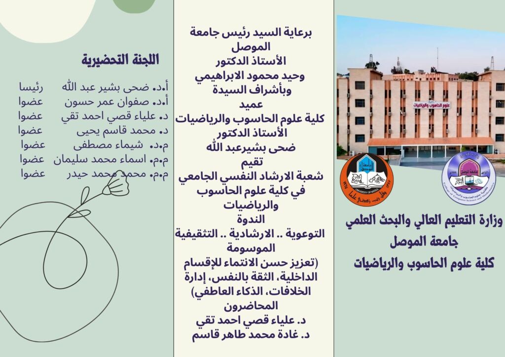 برعاية السيد رئيس جامعة الموصل الأستاذ الدكتور وحيد محمود الإبراهيمي، وإشراف وحضور عميد الكلية الأستاذ الدكتورة ضحى بشير عبد الله البزاز، نظّم قسم الرياضيات في كلية علوم الحاسوب والرياضيات، يوم الثلاثاء الموافق 25 تشرين الثاني 2025، ندوة علمية بعنوان: “التكامل المعرفي بين الرياضيات وعلوم الحاسوب: رؤى جديدة للمستقبل”.