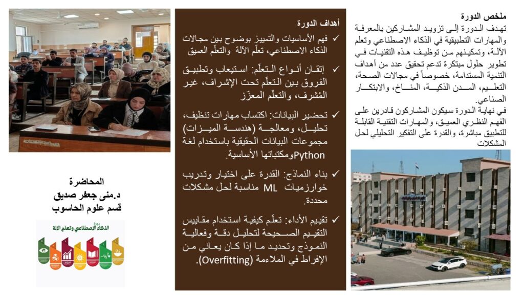 برعاية واشراف السيدة عميد كلية علوم الحاسوب والرياضيات الأستاذ الدكتور ضحى بشير عبدالله المحترمة وضمن سلسلة النشاطات العلمية للكلية, تقيم الكلية/ شعبة التاهيل والتوظيف والمتابعة دورة بعنوان ” الامن السيبراني وحماية البيانات  ” يوم الاثنين 9-12-2025 .