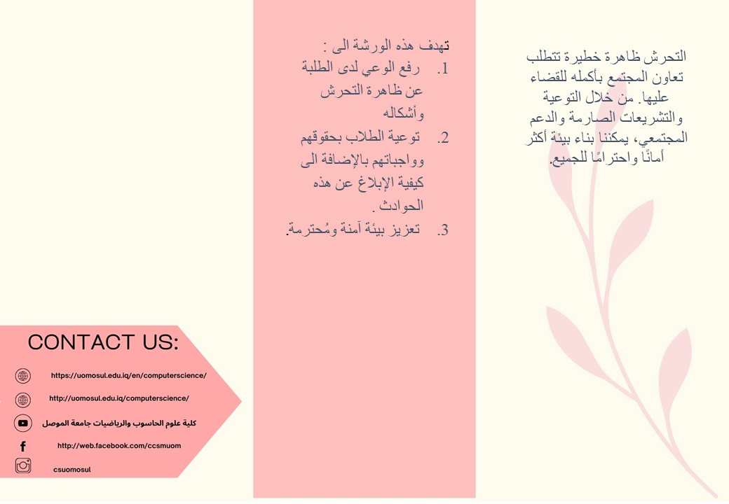 اعلان ورشة توعوية بعنوان (التحرش :الاسباب والحلول)