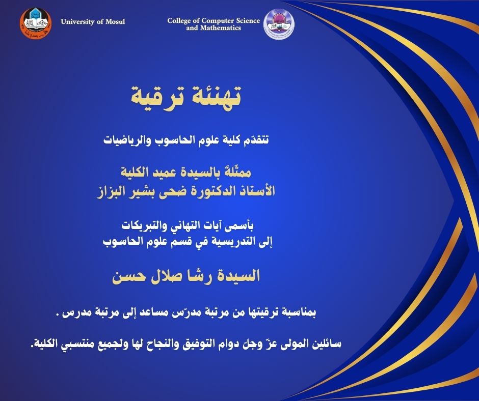 برعاية السيدة عميد كلية علوم الحاسوب والرياضيات الأستاذة الدكتورة ضحى بشير عبد الله البزاز، نظّمت شعبة الإرشاد النفسي الجامعي في الكلية ورشة توعوية بعنوان «الرياضة: صحة وإبداع ذهني» وذلك يوم الأربعاء الموافق 24 كانون الأول 2025، قدّمها الدكتور محمد قاسم يحيى، ضمن أنشطتها الهادفة إلى تعزيز الوعي الصحي والذهني لدى الطلبة.