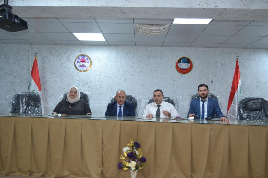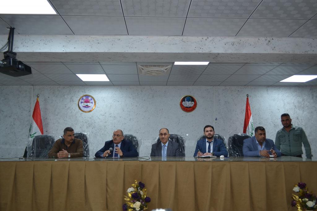 مع بدء العام الدراسي الجديد و بحضور السيد وكيل عميد الكلية الاستاذ المساعد الدكتور احمد محمد جمعة والسادة روؤساء الاقسام العلمية والسيد مدير التسجيل والسيد مدير شعبة الاعلام والعلاقات العامة تم عقد اجتماع موسع بطلبة المستوى الاول في كليتنا وقد تضمن الاجتماع عدة محاور الاول التاكيد على ضرورة الالتزام بالتعليمات الرسمية الخاصة بحضور الطلبة ومحافظتهم على الاملاك العامة وضرورة التعاون مع الكادر التدريسي والمحور الثاني حول نظام المقررات الدراسية والنقلة النوعية التي سيحدثها هذا النظام بعد ما تم تطبيقه والمحور الثالث تم فيه الاجابة على جميع استفسارات الطلبة من قبل السادة الحضور.