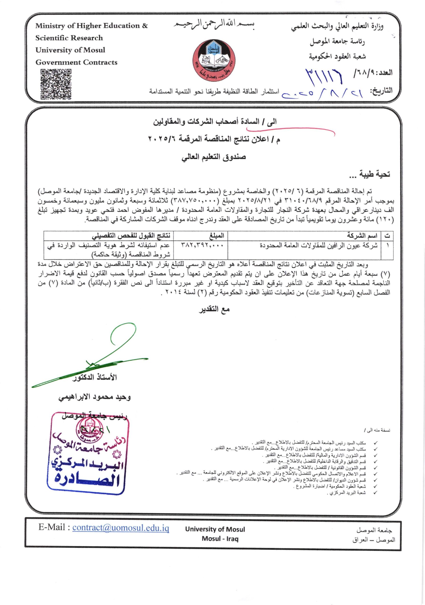 تأسست شعبة العقود الحكومية عام 2009 استناداً الى قرار مجلس الوزراء ذي العدد 12س/166 في 7/2/2008بموجب كتاب وزارة التعليم العالي والبحث العلمي ذي العدد 3/939 في 23/3/2008 حيث صدر الامر الجامعي بتأسيس الشعبة بالعدد 9/3/606 في 14/1/2019 ويتفرع عنها عدة وحدات تختص بادارة التعاقدات ،عقود المناقصات، الاستثمار، المتابعة، البريد الالكتروني والارشفة الالكترونية ،العقد الالكتروني ووحدة عقود المزايدات. كما ترتبط بالشعبة لجان فتح وتحليل العطاءات تطبيقا لتعليمات تنفيذ العقود الحكومية رقم (2) لسنة 2014والضوابط الملحقة بها. ارتباط الشعبة مع قسم الاعمار والمشاريع بموجب الامر الجامعي ذي العدد 4327/23/9 في 2023/2/8. إقرأ المزيد