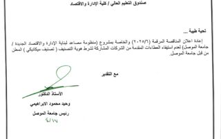 اعلان نتائج المناقصة المرقمة 6/2025 صندوق التعليم العالي (مشروع منظومة مصاعد لبناية كلية الادارة والاقتصاد /جامعة الموصل)