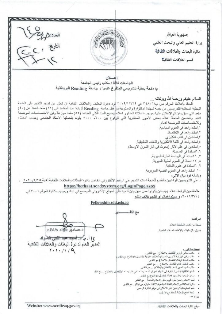 التنويه الى موعد انتهاء التقديم للاجازات الدراسية خارج العراق للعام الدراسي 2019-2020 عبر المنظومة الالكترونية