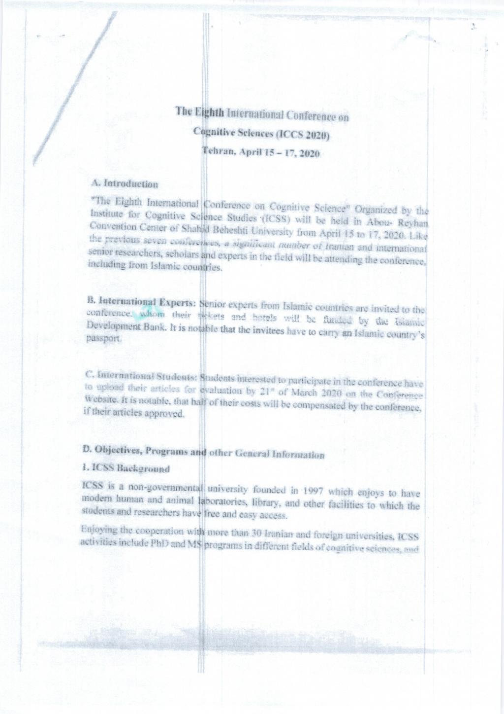 المؤتمر الدولي الثامن العلوم الادراكية (ICCS2020)