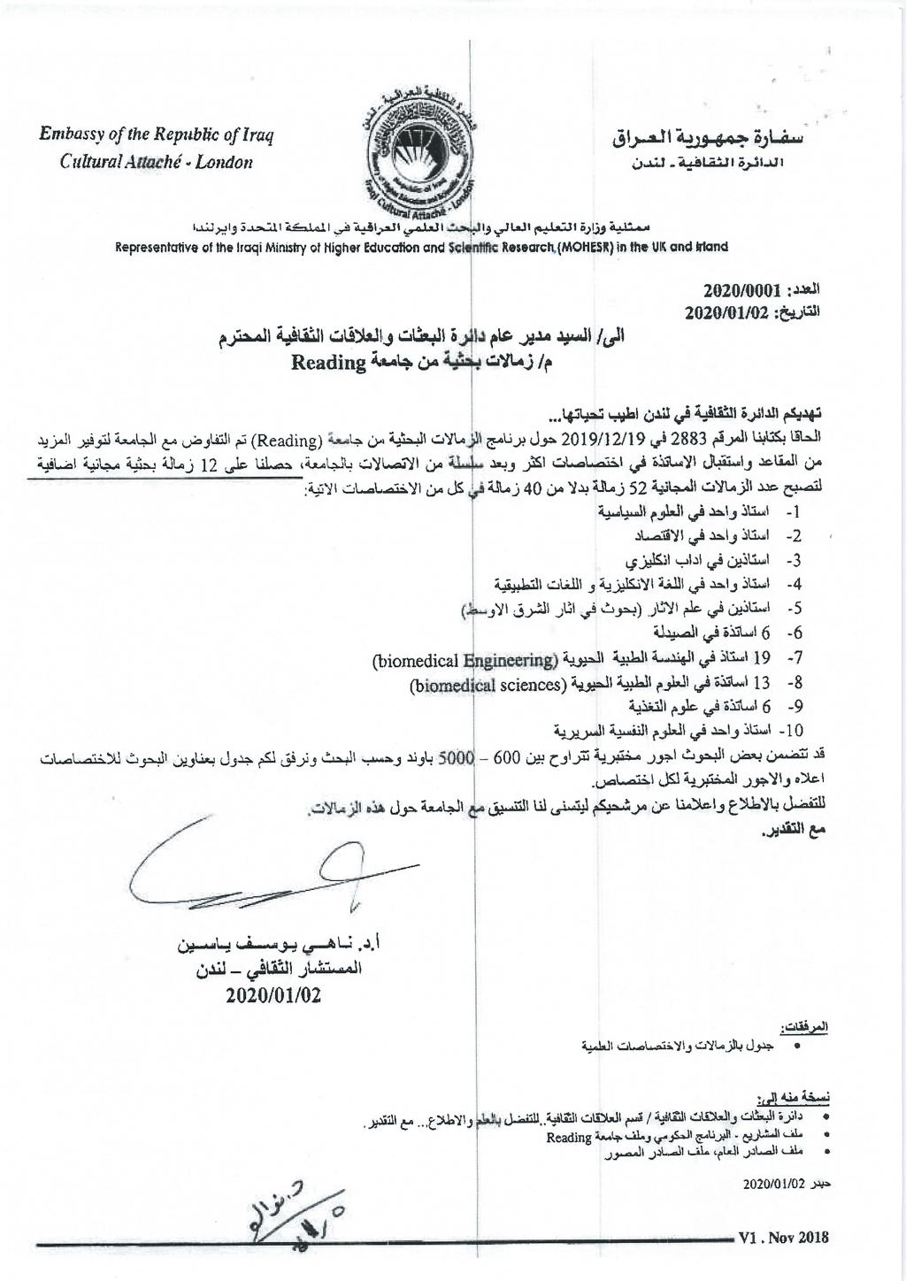 تمديد فترة التقديم على المنحة البحثية المجانية من جامعة Reading البريطانية للتدريسيين من حملة شهادة الدكتوراه