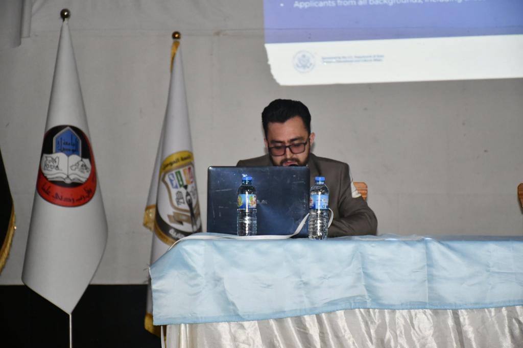 أقام قسم البعثات والعلاقات الثقافية في رئاسة جامعة الموصل يوم الاحد ١٣ ٱذار ٢٠٢٢، في قاعة المسرح الطلابي ، محاضرة تعريفية عن منح برنامج فولبرايت لدراسة الماجستير في الجامعات الأمريكية الرصينة قدمها محاضرين من مؤسسة Amidst حيث تضمنت المحاضرة تفاصيل التقديم للمنح و الشروط المطلوبة للمتقدمين و الاختصاصات المتوفرة. حضر المحاضرة طلبة الجامعة من مختلف التخصصات و عدد من الأساتذة المهتمين بالتعرف على تفاصيل منح فولبرايت.
